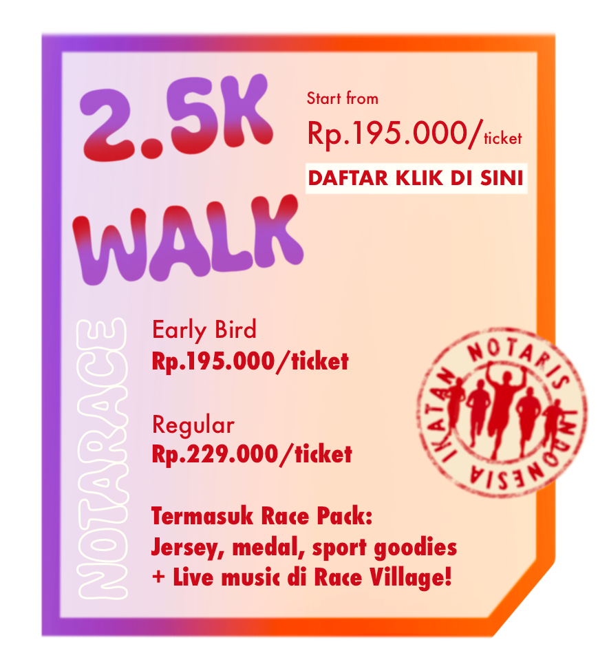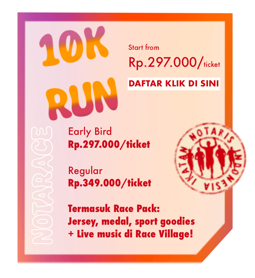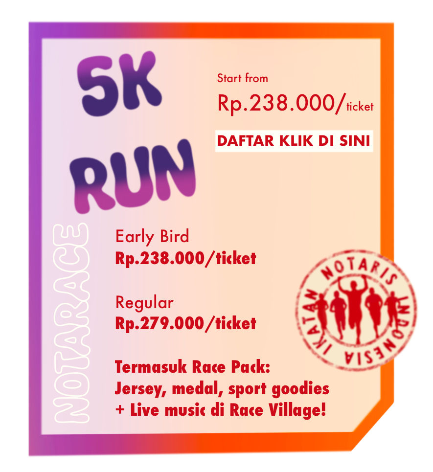 Dari notaris hingga masyarakat umum, dari pejalan santai hingga pelari kompetitif-acara ini terbuka untuk semua orang yang ingin bergerak lebih sehat dan lebih seru!